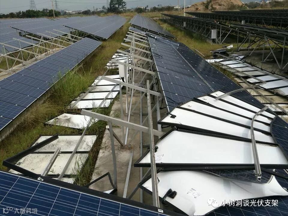 台风天,大家都选择在家里,尽量不出门。但是在户外的光伏电站却没有那么多选择,只能“坚守”在自己的工作岗位上,而光伏支架作为稳固和支撑整个电站的设备,其抗风性能则显得尤为重要。但是台风一来,还是有很多支架“翻了肚皮”,这是什么原因呢?