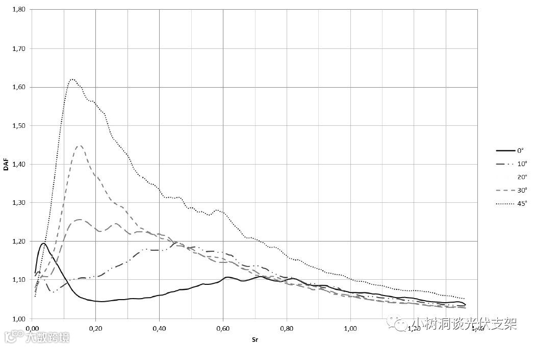 对于跟踪器来说,DAF数值的大小有时甚至可以到达5.0,也就是说实际考虑了风致共振后的荷载是静态风荷载的5倍。