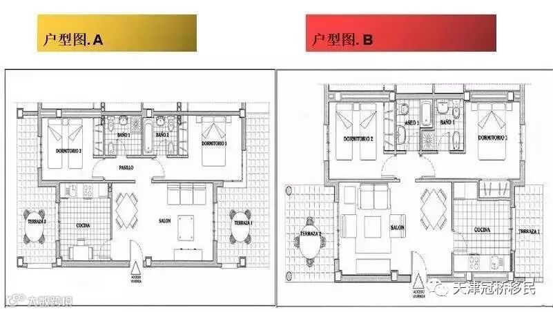 房型: 2-3个卧室/ 2个卫生间/ 带阳台客厅
