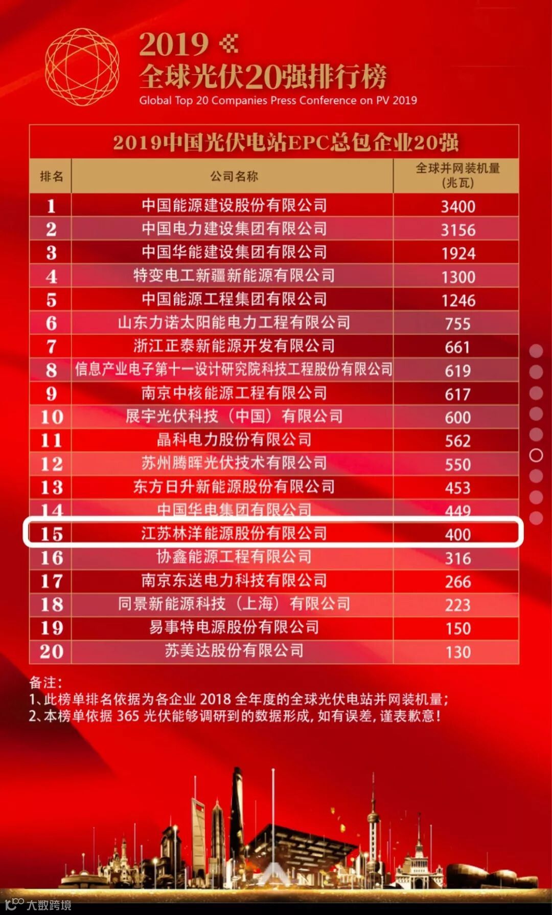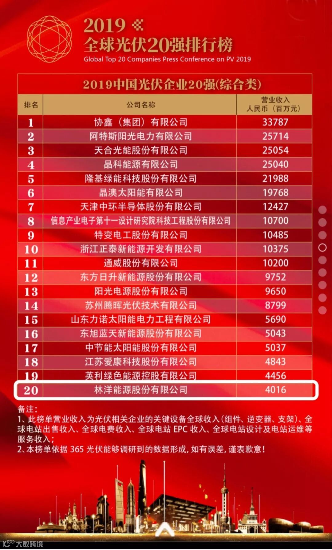 该榜单通过详尽的数据调研,依据上一年全年度的企业经营业绩综合得出,备受业界关注。为各路媒体、投资者、金融机构、相关产业、行业第三方服务机构展示光伏各细分领域的优势企业,为行业发展研究、信贷、投资、合作、采购提供指南。林洋能源品牌影响力再度得到权威和市场的认可与肯定。