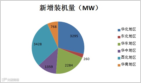 从新增装机布局来看,2019年上半年,华北地区新增装机329.5万千瓦,占全国的28.9%;东北地区新增装机26.0万千瓦,占全国的2.3%;华东地区新增装机228.4万千瓦,占全国的20.0%;华中地区新增装机135.9万千瓦,占全国的11.9%;西北地区新增装机342.8万千瓦,占全国的30.1%;华南地区新增装机76.8万千瓦,占全国的6.7%。