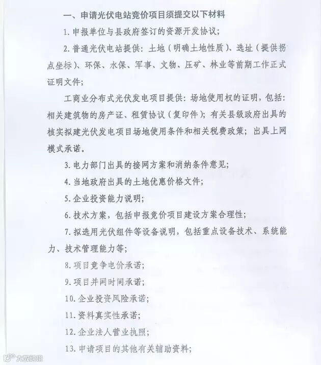 发文标题:《关于上报光伏发电竞价上网项目材料的通知》