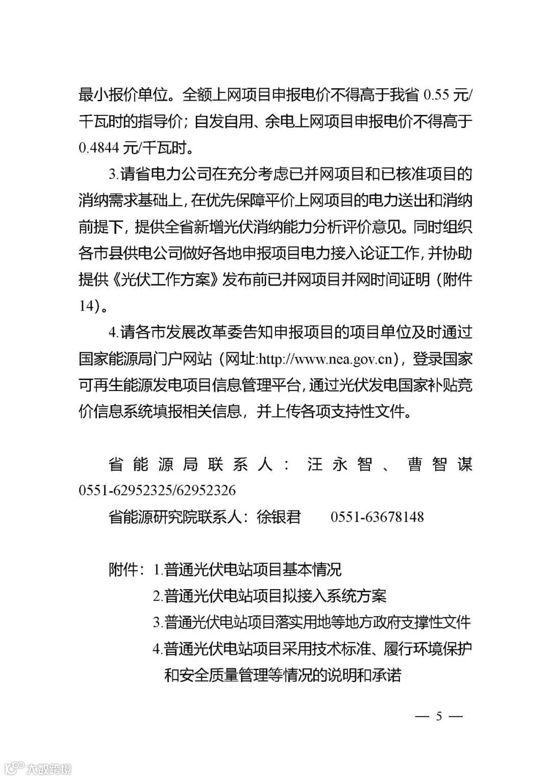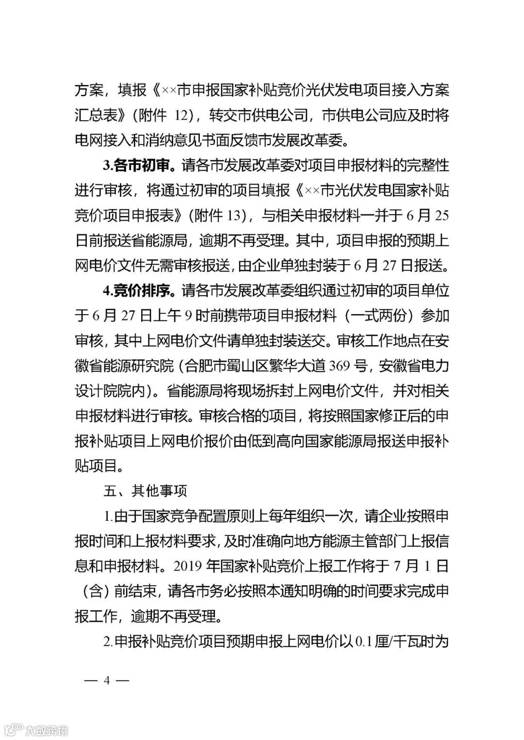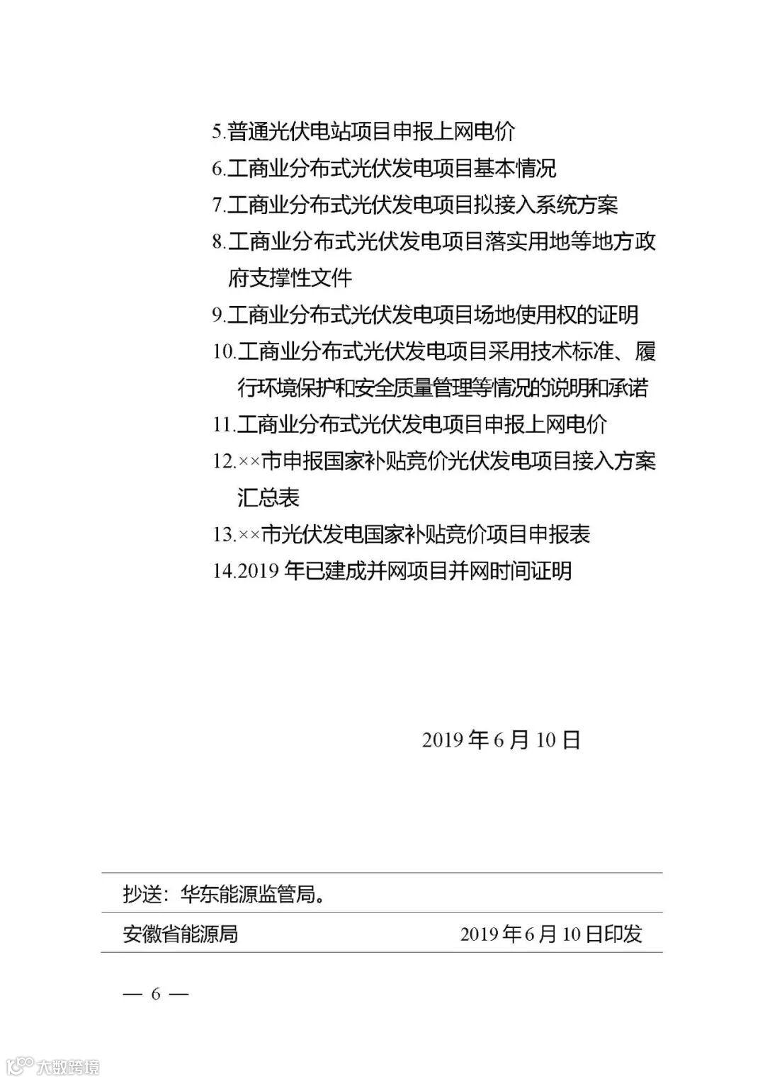 发文标题:《安徽省能源局关于印发安徽省2019年申报国家补贴光伏发电项目竞争行配置工作方案的通知》