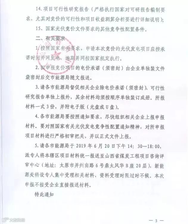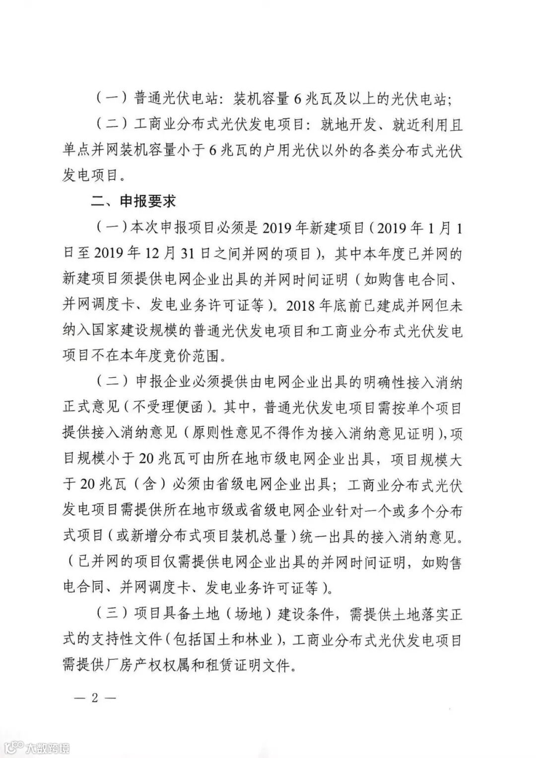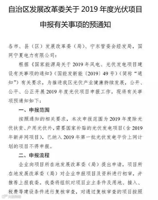 发文标题:《关于2019年度光伏项目申报有关事项的预通知》