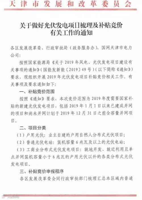 在国家能源局《2019年风电、光伏发电项目建设工作方案》下发之后,各省陆续启动了省级竞价申报工作,截止目前已有天津、北京、宁夏、陕西、安徽、山东、河北、陕西、浙江等地发布竞价申报工作。