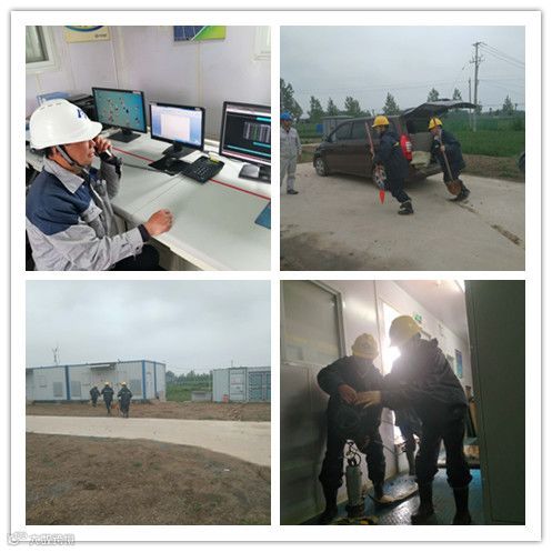 上午9:30分,演练总指挥宣布此次防汛演练启动,背景设定为灵璧明升电站因遭遇连续暴雨天气,开关站积水深度已经达到警戒水位,高压设备面临接地跳闸风险,险情严峻。演练开始,巡检组接到电站运行值班员的情况汇报,立即启动防汛应急预案,成立防汛应急小组,迅速携带防汛器械赶赴现场。