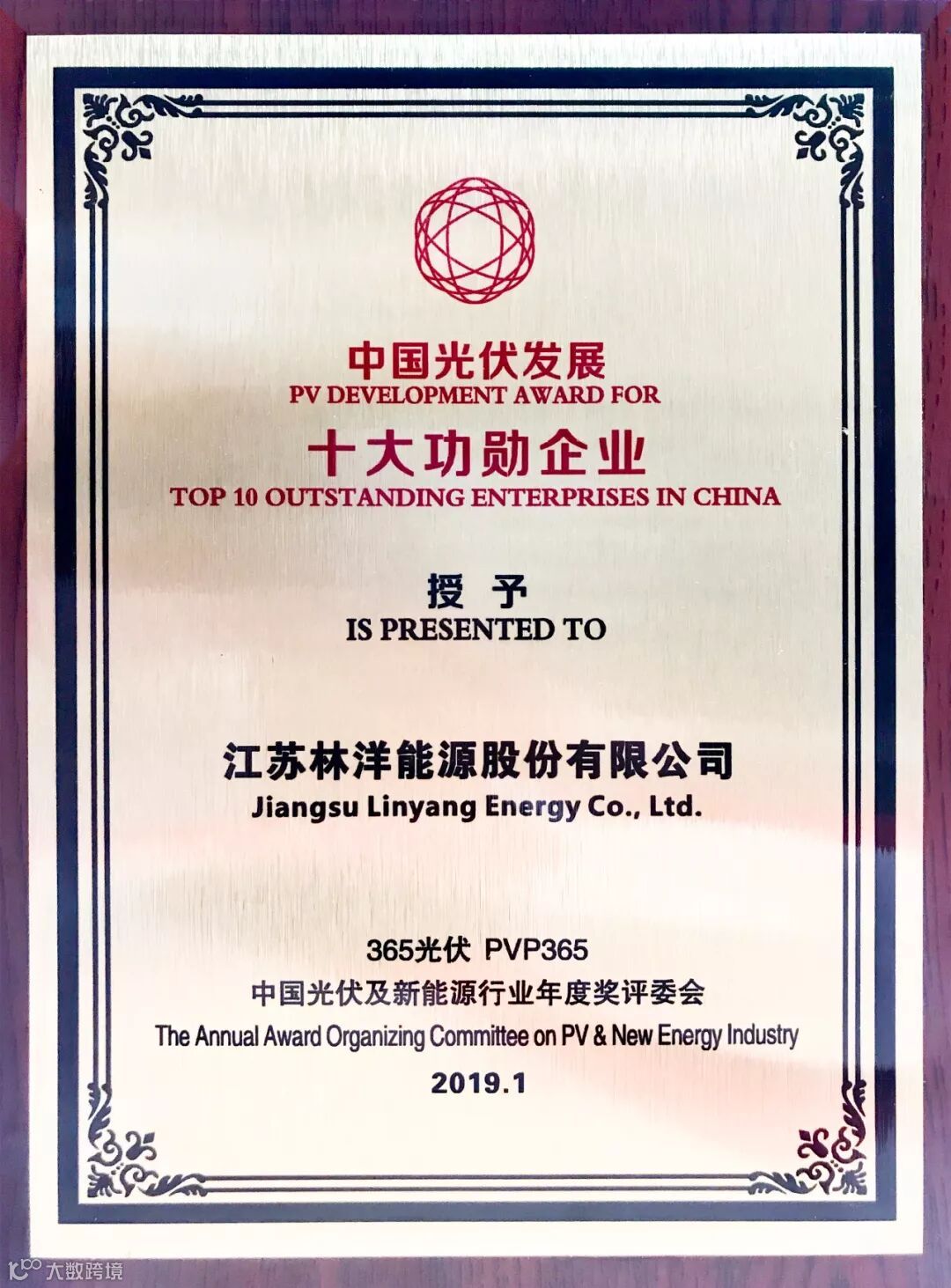 在大会同期举办的年度奖颁奖典礼上,凭借公司在能源领域的持续贡献,尤其是近年来在新能源光伏方面的创新突出成果,林洋能源收获2019年开年大奖,荣膺“中国光伏发展十大功勋企业”。