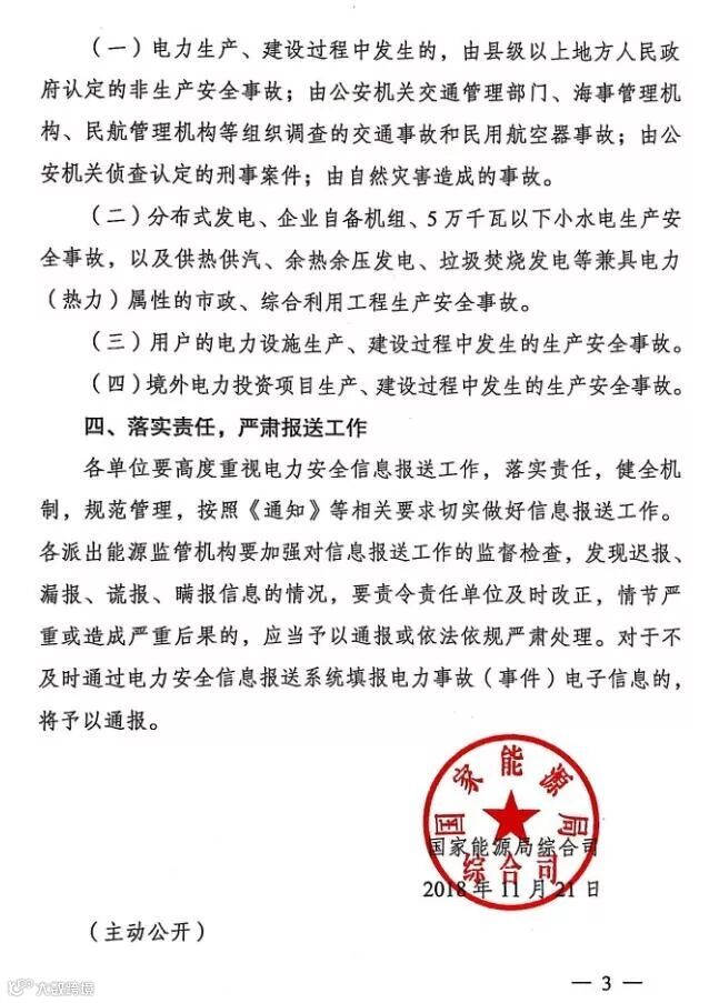 12月17日,国家能源局综合司印发《关于进一步规范电力安全信息报送和事故统计工作的通知》,要求严肃电力安全信息报送,规范事故统计,分布式发电不纳入统计范围。