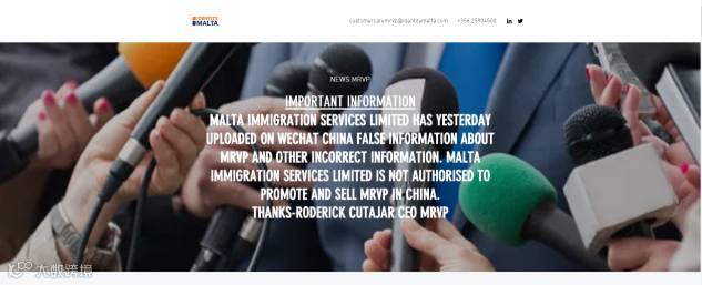名为Malta Immigration Services Ltd. 的公司于昨日在中国微信渠道发布了关于马耳他移民项目的虚假信息。该公司从未获得在中国推广马耳他国债移民项目的授权。