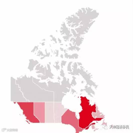 在今年4月份,一家房地产网站Zoocasa所做的全国调查显示,魁省民众最支持对外国买家收税,比例高达77%,虽然只有61%的人认为是外国买家推高了房价。BC省民的支持率居其次,达到75%(图中颜色越深说明支持率越高):