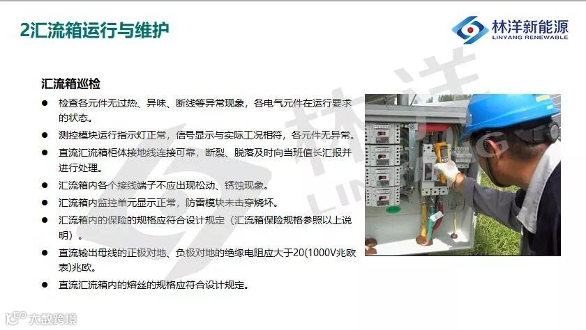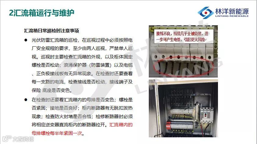 主要讲解了汇流箱的运行规定与巡检时硬注意的细则,并对巡检过程中应注意事项进行着重强调。