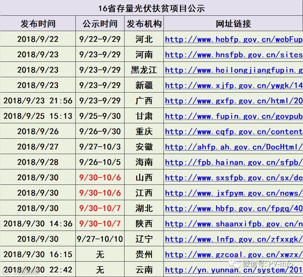 10月8日开始填报的日子选的太好了,以至于各省扶贫办及能源局不得不将本地项目的公示时间选在了9月30日-10月7日,这个假期扶贫办很忙~