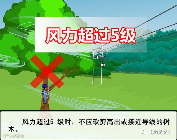 (4)风力超过 5 级时,不应砍剪高出或接近导线的树木。