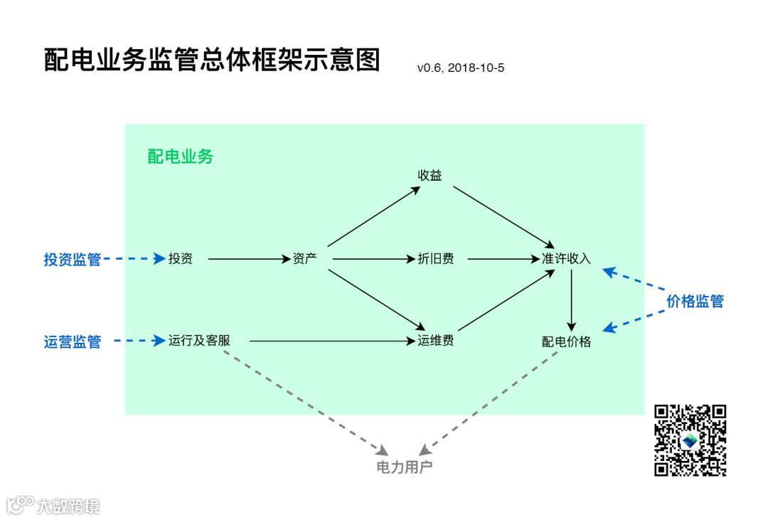 在该监管方式下,对配电业务的监管重点是投资、价格、运营这几个环节。