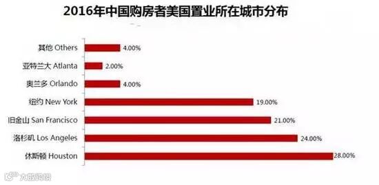 30%购买美国房产的中国人认为,房产比黄金更值得长期拥有。他们热衷于在以下美国的城市置业,前五名依次为:休斯顿(28%)、洛杉矶(24%)、旧金山(21%)、纽约(19%)、奥兰多(4%)。