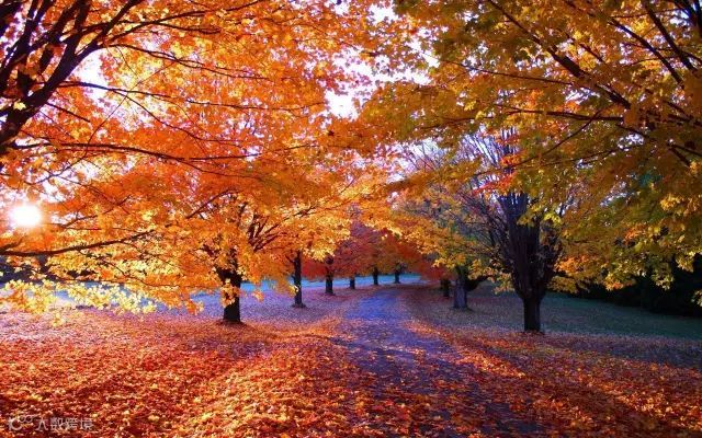 鲜红艳丽的枫叶,加上榆树、橡树的黄叶,像雪花一般飘落纷飞,在秋日里放肆地舞蹈、盘旋。