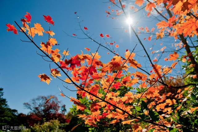 金色的梧桐叶,鲜红的枫叶,空气清新,鸟语花香。