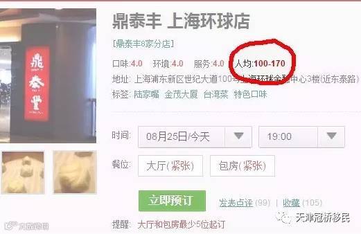 上海鼎泰丰人均100人民币,占一天收入的 38%。