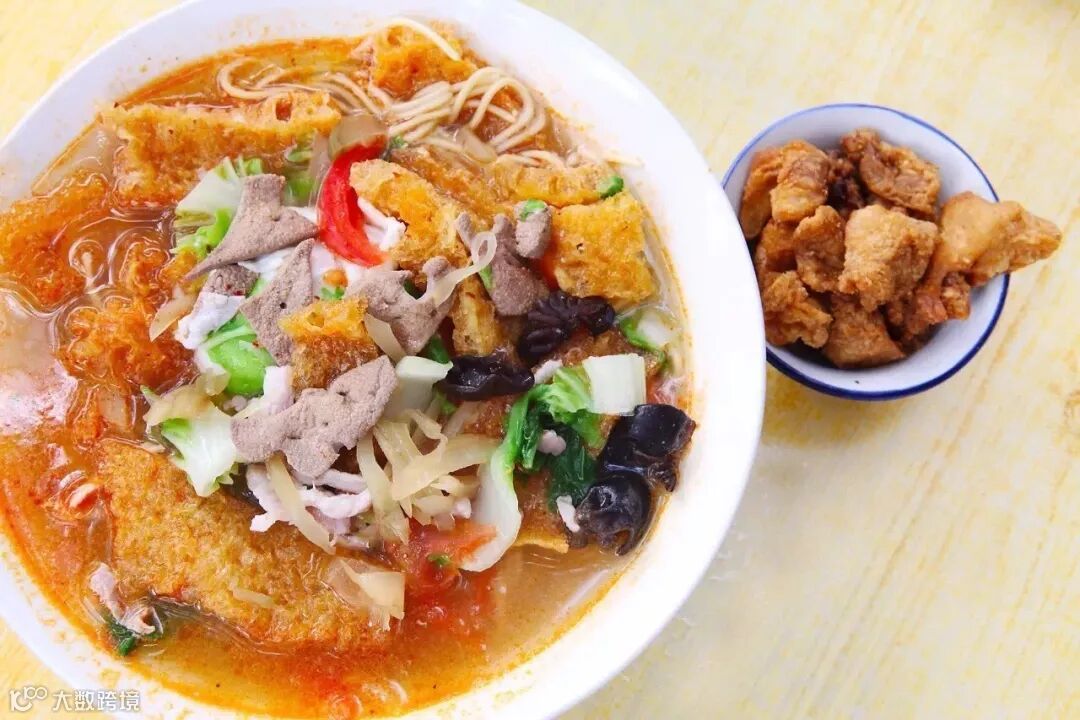 对于南京人来说,吃皮肚面是一件超级治愈的事情,几天不吃就会很想念!人多的时候,拿高点的板凳当桌子,蹲在路边的梧桐下就可以huai起来了!进了面馆,和老板点头打个招呼,到收银台点个三鲜或者猪肝面,再加个肥肠、小排,最重要的是油渣!辣油甩放!面端上来,清亮的浓汤,辣油薄而分散。迫不及待入口,感受到面的顺滑弹牙,而皮肚吸饱了汤汁也鲜美无比,大快朵颐之后是大汗淋漓,似乎所有烦躁都随着水分走光。