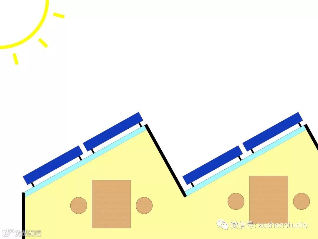 在光伏建筑的设计阶段,建筑师就要考虑挖掘太阳能利用的潜力,采用更有利光伏构建布置的建筑造型。