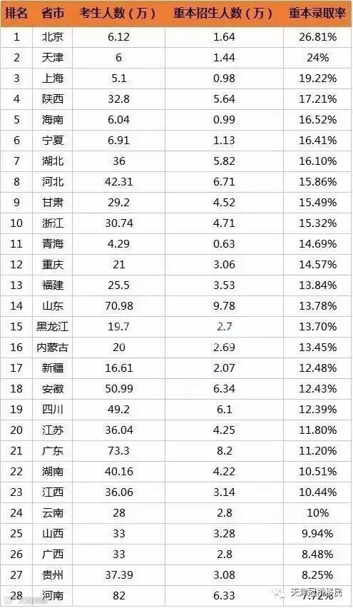 2017年中国高考考生共计940万人。根据2016年数据显示,中国高校总数约2879所,其中一本院校130所,重本录取率北京地区最高,为26.81%,河南省最低,仅为7.72%。