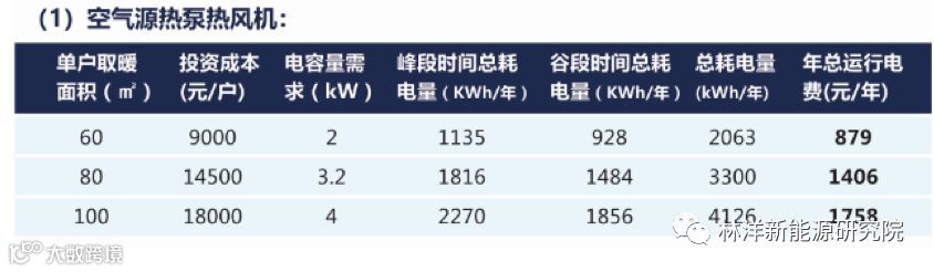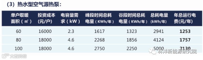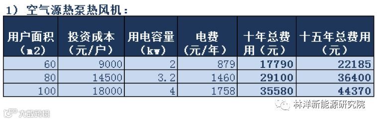 每种技术根据用户的采暖面积不同有如下的经济分析: