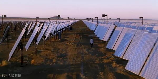 受制于制作成本,道具师只是在深色背板上简单绘制了电路来模拟薄膜发电系统。并且道具师还犯了一个错误,虽然跟踪系统的支架看起来更拉风,但这类支架确实很少应用在发电效率较低的薄膜系统中,而是更多的与传统光伏板搭配使用;而薄膜发电则应该更好地发挥其轻便、透光的特性,尽量增大铺设面积。