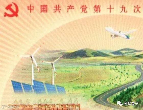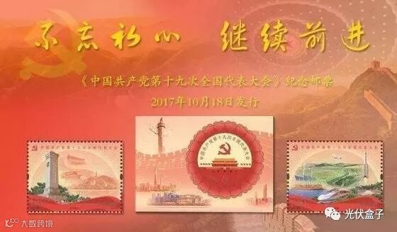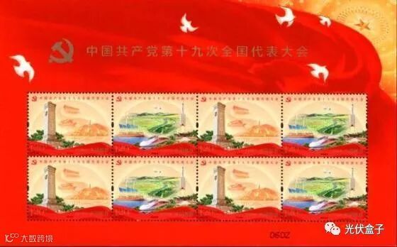 就在第十九次全国代表大会召开之际,《中国共产党第十九次全国代表大会》纪念邮票正式发行,其中光伏、风电登上纪念邮票。