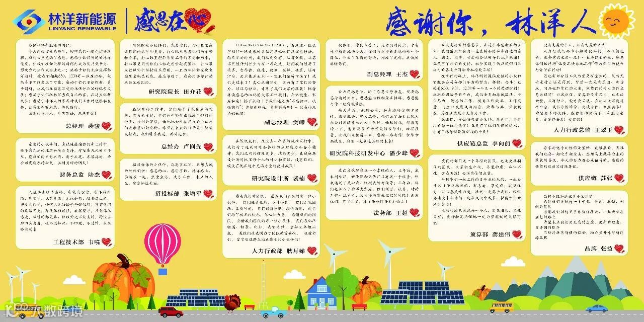 感恩节,虽然起源于西方,但感恩却长存每人心中。世间最美好的两个字便是“谢谢”,一句简单真诚的“谢谢”,便足以打动人心。父母、爱人、朋友、同事、师长......我们需要感谢的人太多,幸好在寒冷的冬日里,有这样一个节日,让我们对彼此说出心底的感谢。在林洋,有一群人,这样说出他们的感谢......