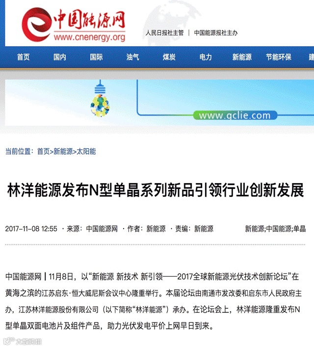 近日,新华网、美通社、腾讯网、搜狐网、中国能源网、中国能源杂志、证券时报网、中金在线、天天快报、今日头条、界面新闻、等主流报网聚焦报道林洋N型单晶双面高效系列产品发布。