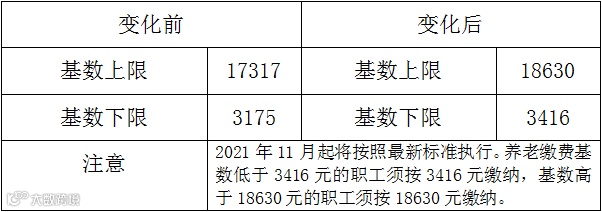 养老保险缴费基数(上下限)调整: