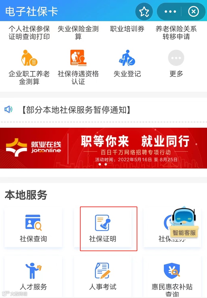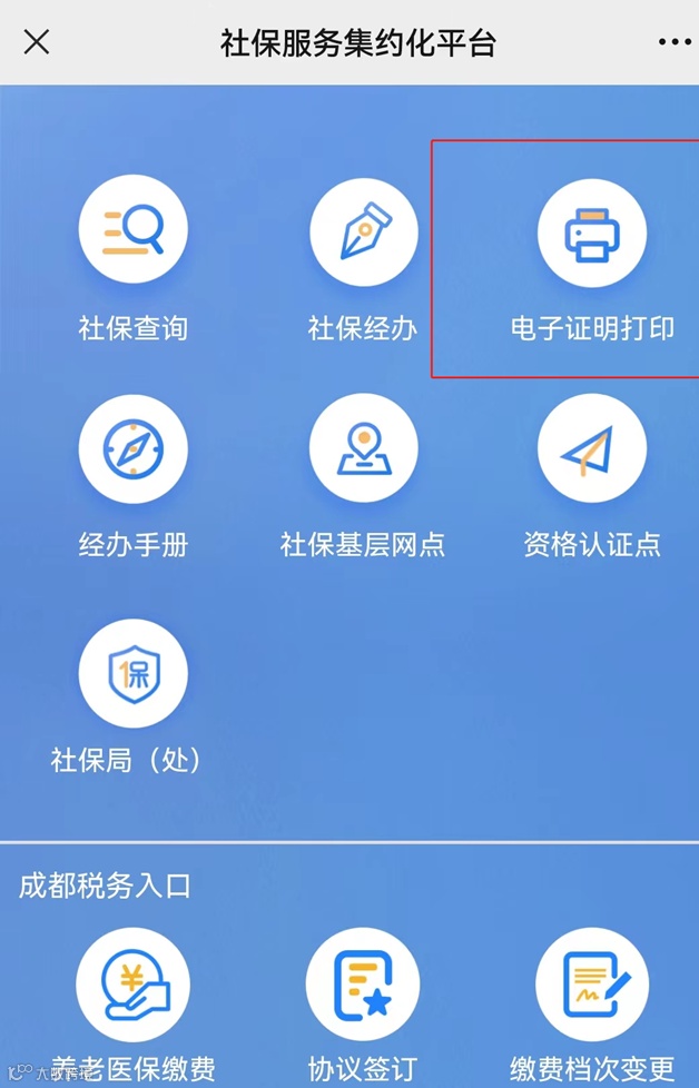 3、登录后进入“社保证明”即可选择需要打印的证明。