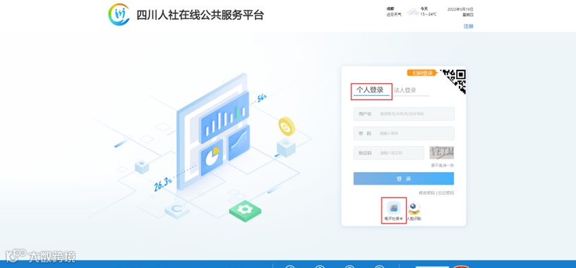2、选择"个人登录"(比如使用电子社保卡登录)。