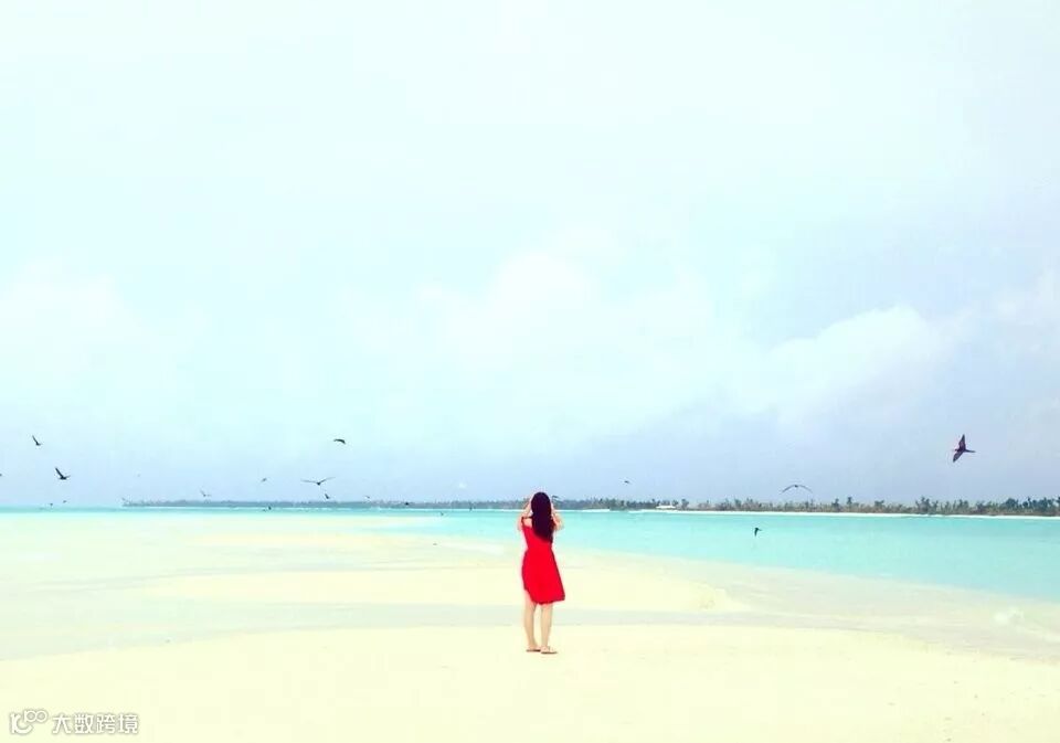 当沿着乳白色的沙滩交映着蓝色绿色渐层的海洋,彷佛独身走在海中。
