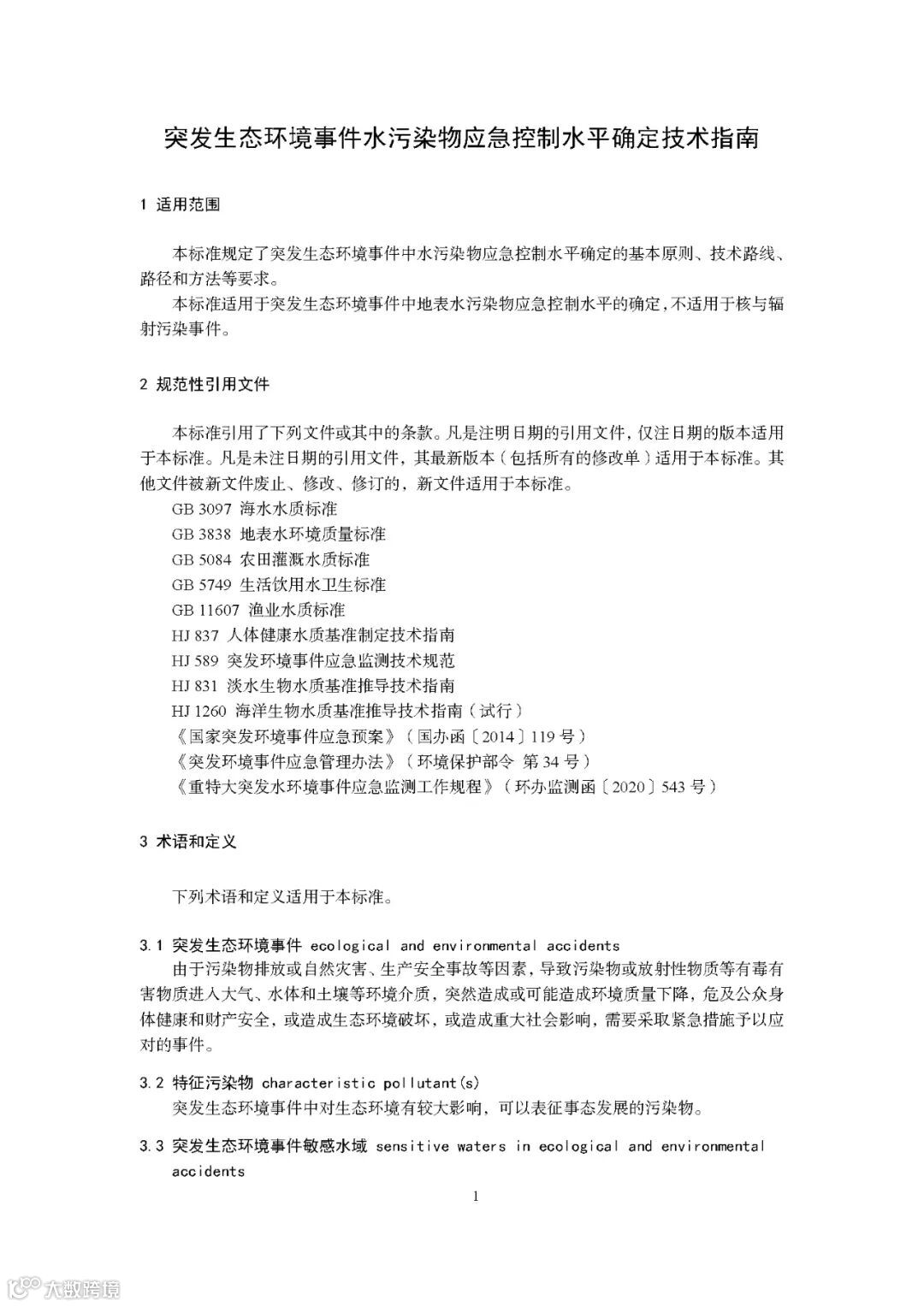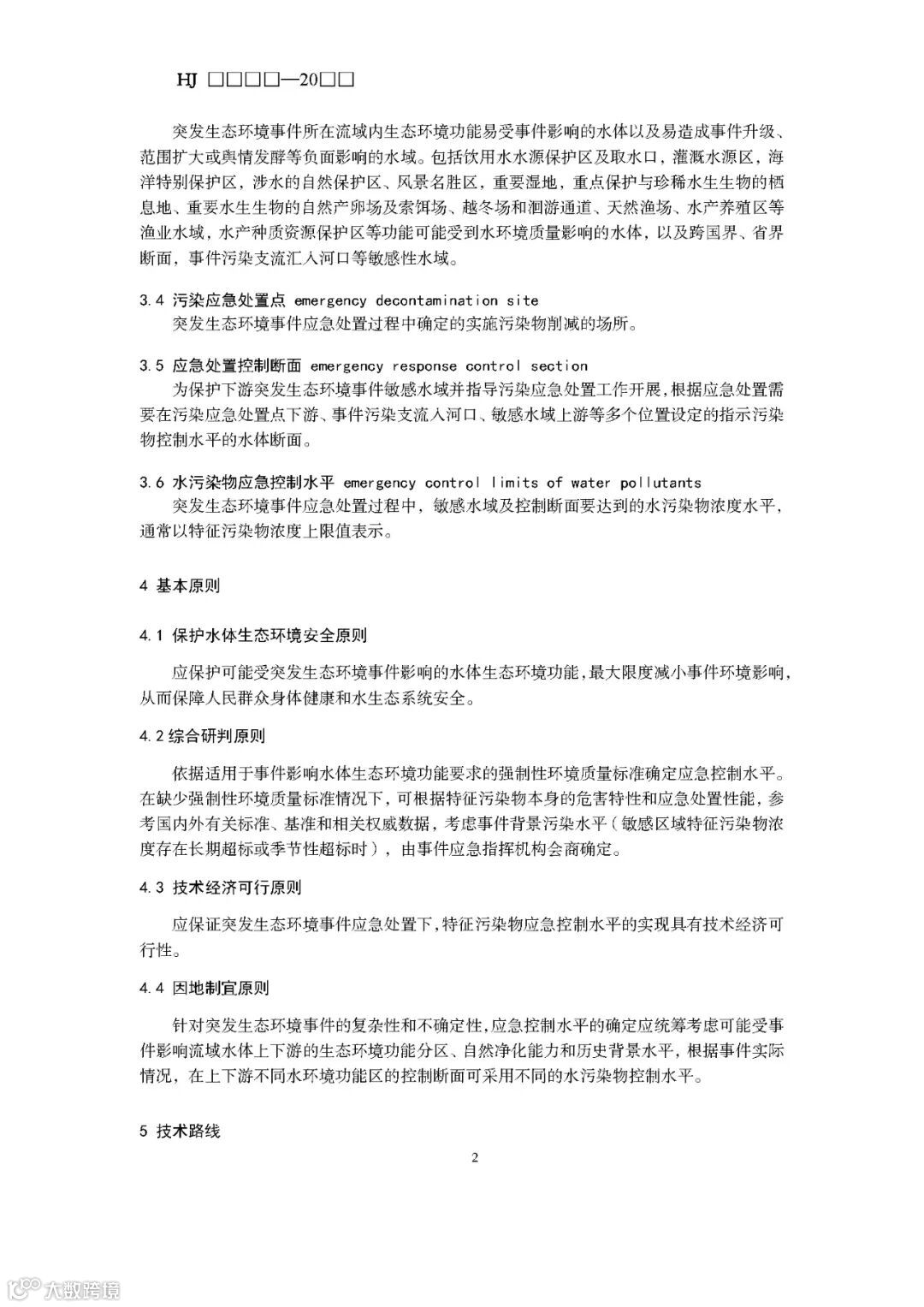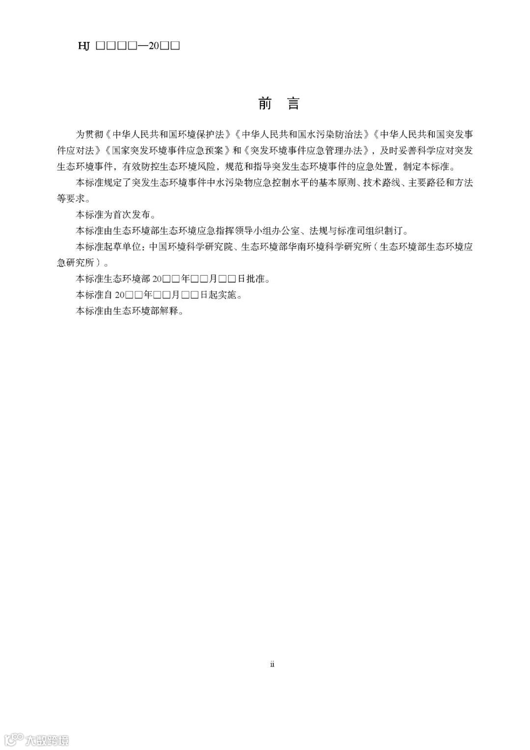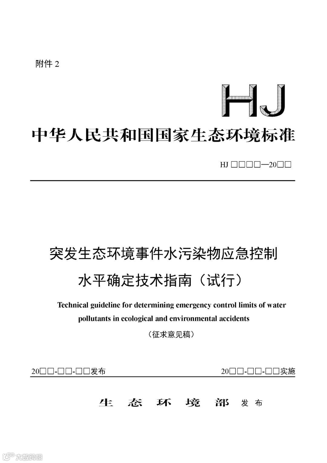 2.突发生态环境事件水污染物应急控制水平确定技术指南(试行)(征求意见稿)
