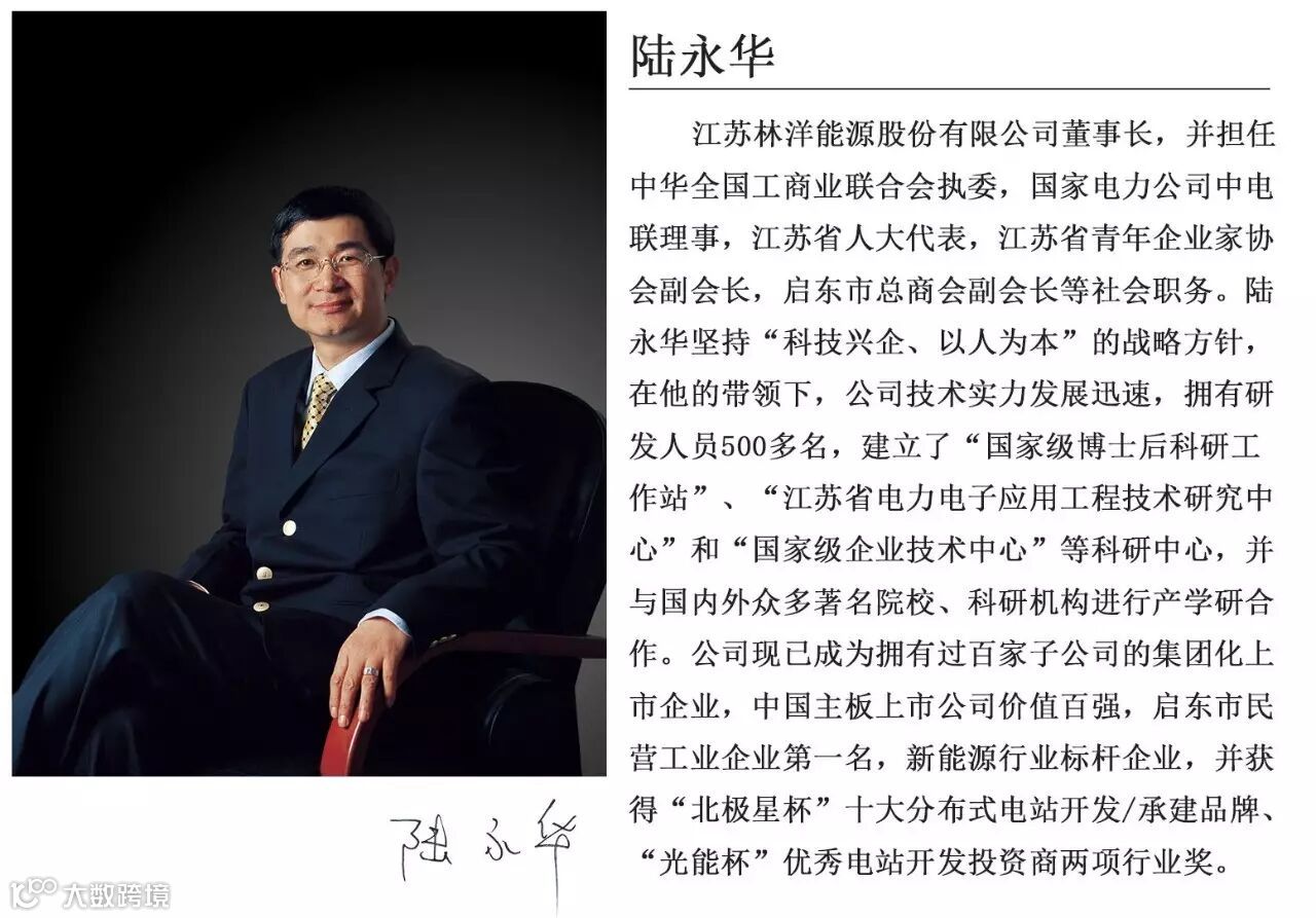 目前,各奖项候选人名单已正式公布,江苏林洋能源股份有限公司董事长陆永华发展新经济,培育新动能,凭借为江苏经济做出的卓著贡献,提名“富民强省新领军者”奖项候选人。