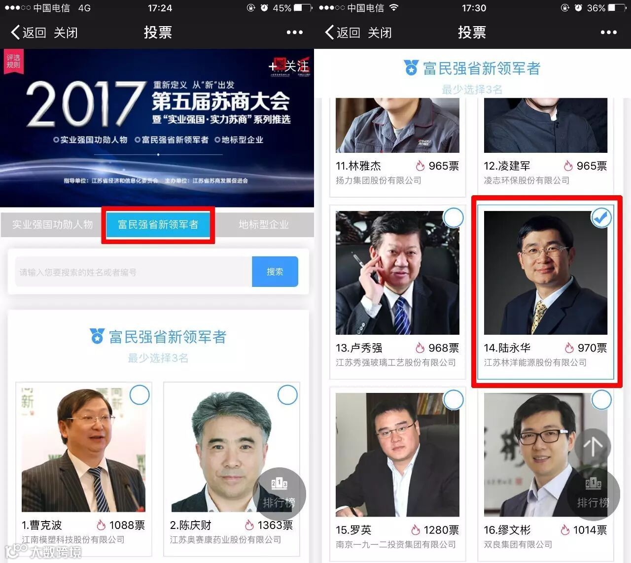 二、在“富民强省新领军者”评选栏目中,为陆永华投票
