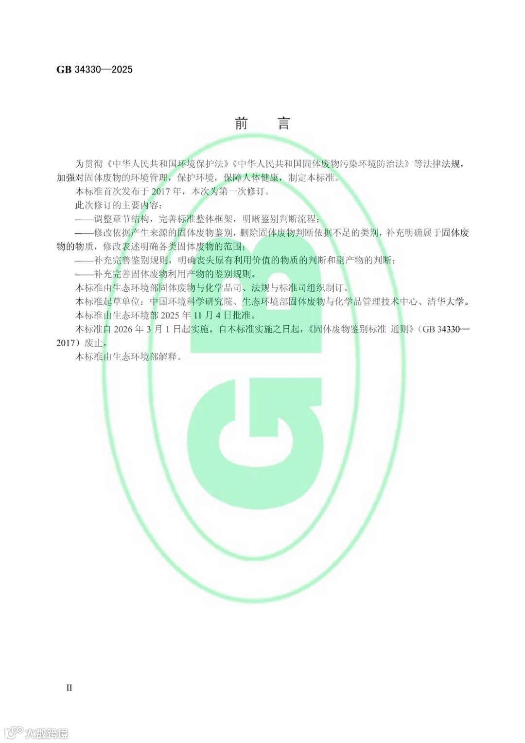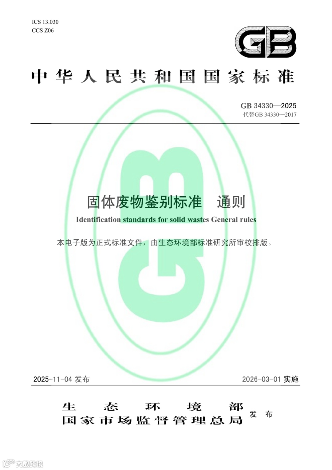 固体废物鉴别标准 通则(GB 34330—2025代替GB 34330—2017)