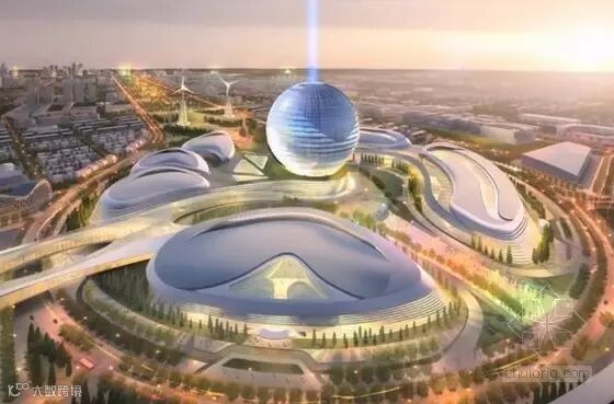 这个球状建筑名叫“光明世界”。整个建筑宽80米,高100米,由2824块玻璃组成,每块玻璃重600—800公斤,总重量超过1.3万吨。每块玻璃两端微微上翘,构成一个弧形,整个建筑看起来像一个充满气的气球。