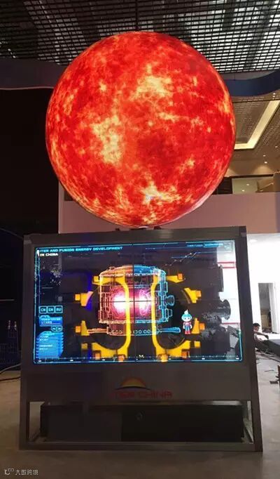 开馆仪式上,由新疆歌舞团表演的舞蹈《歌声与微笑》,传递着中国人民的热情真诚。下午,中国馆正式对观众开放。展馆内,巨型的“人造太阳”最受瞩目。互动主屏上,观众争相触摸主屏上出现的能量柱汇集点。触摸互动的人越多,能量柱上升得越快。据介绍,这象征着每个人都在给聚变事业贡献自己的一份力量。最终,能量柱上升到终点并点亮上方的LED球,象征中国核聚变技术的成功将惠及全球,实现全球能源互联网的伟大梦想。