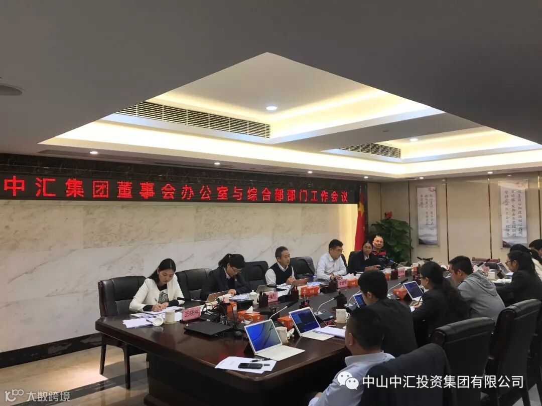 2019年1月11日下午,中汇集团董事会办公室与综合部部门工作会议在集团8楼会议厅召开,中汇集团党委书记、董事长梁悦恒,副总经理温振明,董事会办公室和综合部全体人员参加了会议。