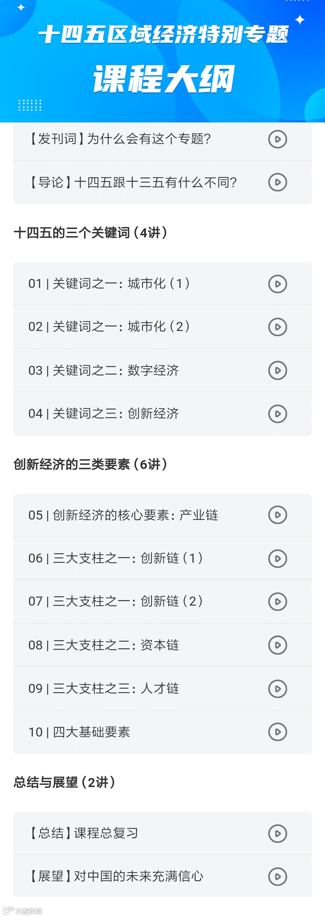 《十四五区域经济特别专题》总计14讲,本讲为其中一讲,请扫码或阅读原文收听专题全讲内容。如果你身边也有关注十四五区域经济的人,可以分享给他们。