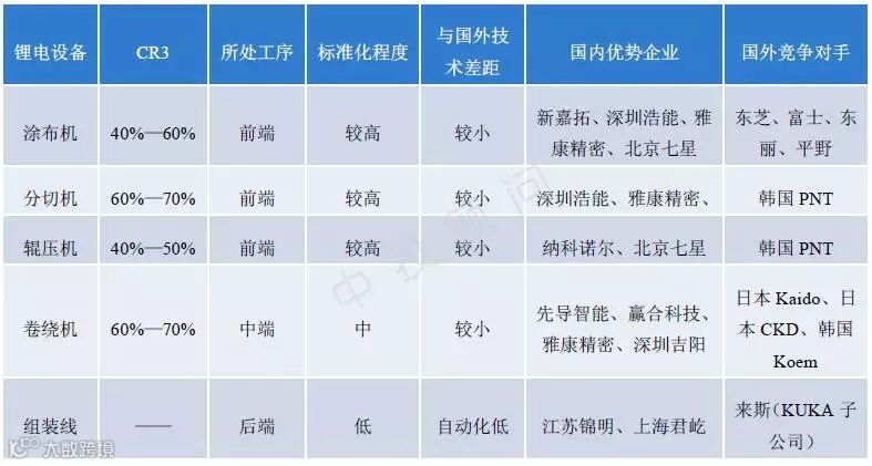 三、锂电设备存在行业门槛,国内市场存量竞争的同时面对日韩企业挤压,目前设备水平上差距仍然较为明显,但整体上而言,国产设备的进口替代在加快。