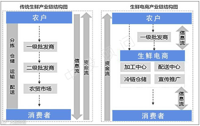 图表 传统生鲜产业链与生鲜电商产业链对比