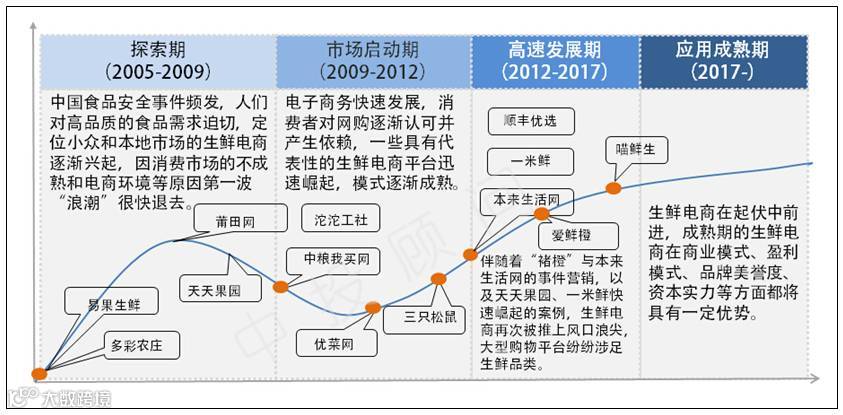 生鲜电商已经走过了市场启动期,当前生鲜电商再次被推上风口浪尖,资本大量进入,大型购物平台纷纷涉足细分生鲜电商品类,行业进入高速发展期。