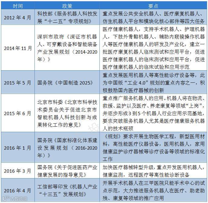 以医疗机器人为代表的服务机器人的发展受到了国家政策的鼎力支持 |