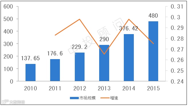 一、中国家用医疗器械市场增长迅速,2015年市场规模达到480亿元,同比增长27.5%,2011年-2015年的5年复合增速接近22%,高于医疗器械平均11%左右的增速。
