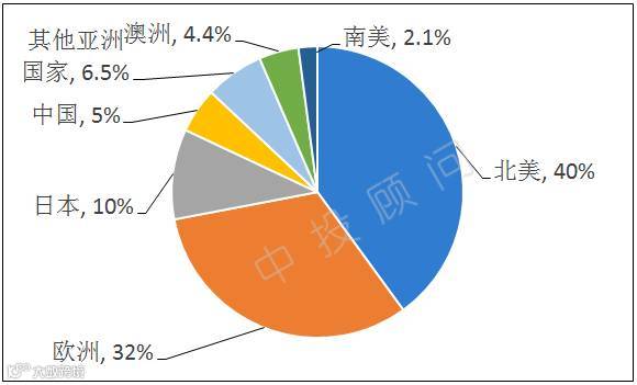 四、从全球医疗机器人的市场份额分布来看,2014年,北美医疗机器人市场占全球总市场的40%,其次为欧洲,占比32%。相比新兴国家5%甚至更低的市场占比而言,医疗机器人在欧美属于市场化程度较高的行业,主要是由市场的供需情况决定的,竞争比较激烈。