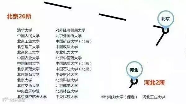 目前北京有8所“985大学”,26所“211大学”,而河北虽然靠近京津,却只有两所“211大学”(其中河北工业大学还是留在天津的),长期以来也是全国人均教育经费最低的省份。有中国医科大学(沈阳)、中国地质大学(武汉)两个先例在,清华大学、中国人民大学、中央民族大学等学校完全可以效仿跟进。