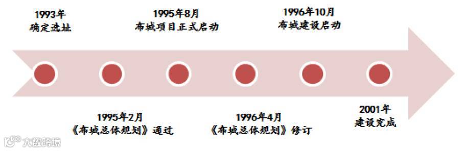 从选址确定到开始建立仅经过三年时间,建设五年完工后政府核心部门几乎都迁入布城。为了减轻首都压力,马来西亚从1990年代早期就开始考虑将政府行政中心迁出吉隆坡。1993年6月,马来西亚布城从6个候选地址中脱颖而出,因其位于吉隆坡国际机场及吉隆坡之间的战略位置、低开发成本及其周边的自然环境。政府对布城的愿景是它能够反映马来西亚的自然与文化遗产,同时融入最新的科技成果来应对未来可能面临的挑战。布城建设经过规划期(1993年至1996年)、建设期(1996年至2001年)和迁移期(2001年及以后)。2001年竣工后,所有政府部门正式入驻办公。该工程共花费了76亿美元。